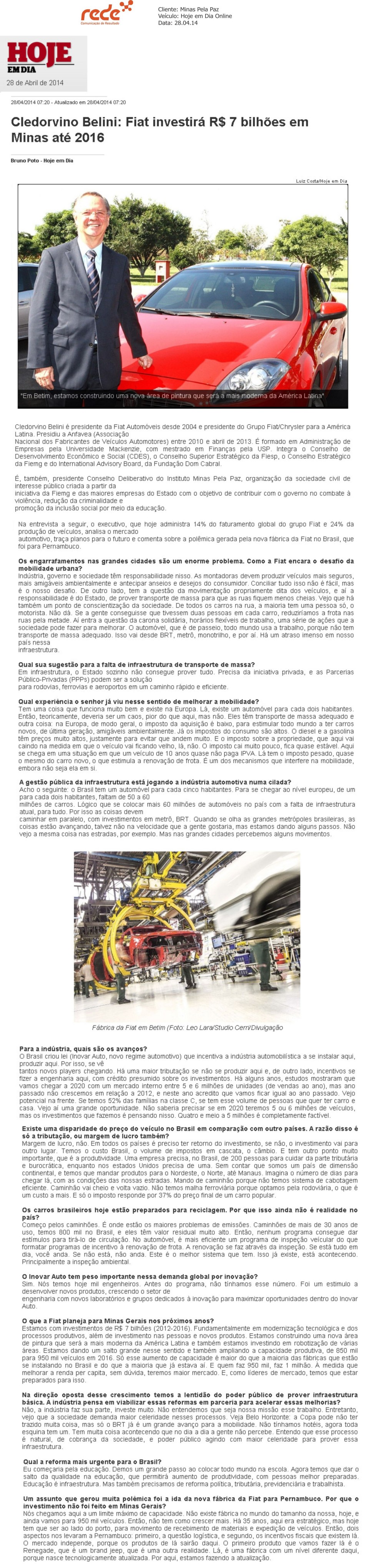 Cledorvino Belini: Fiat investirá R$ 7 bilhões em Minas até 2016