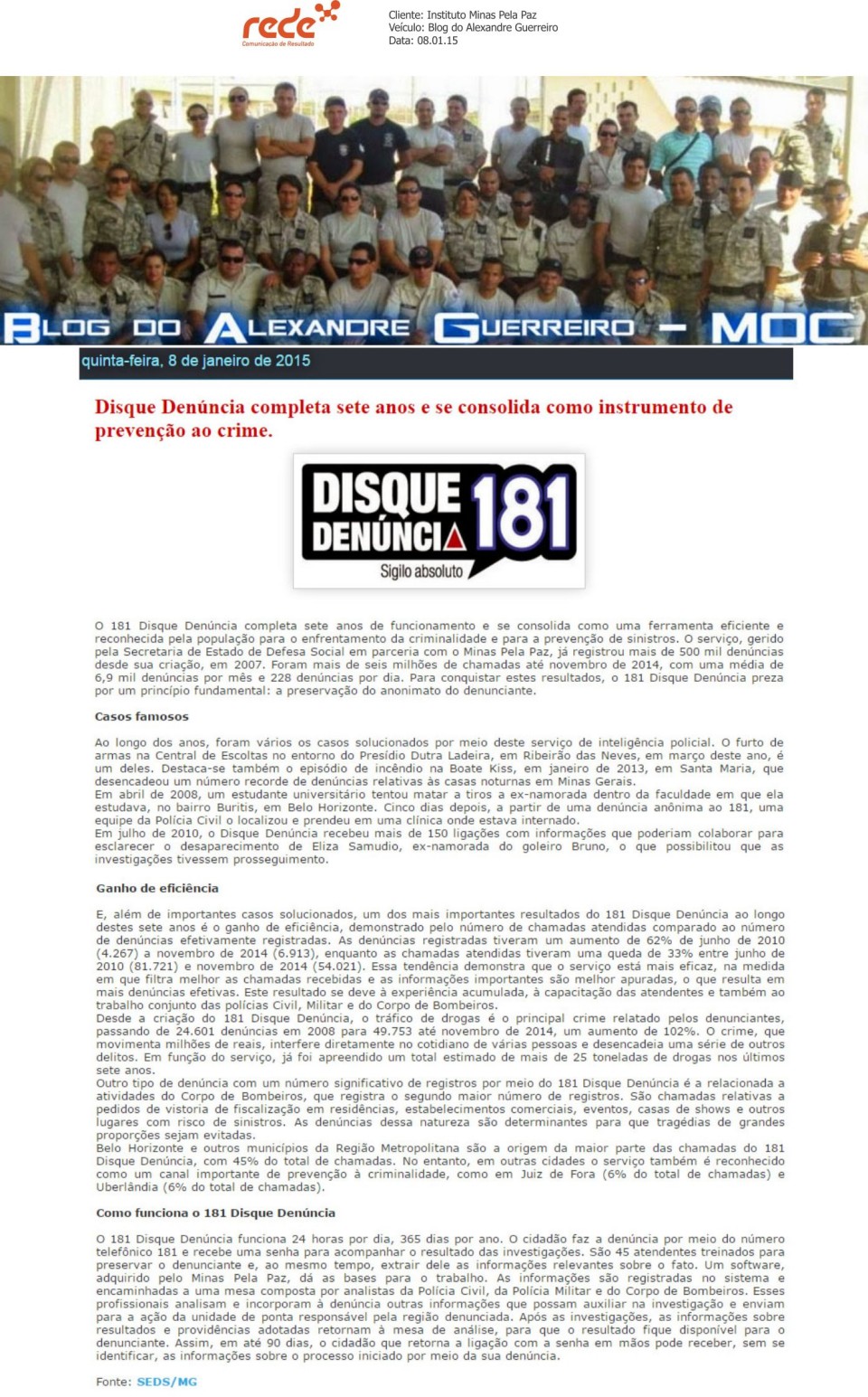 Disque Denúncia completa sete anos e se consolida como instrumento de prevenção ao crime