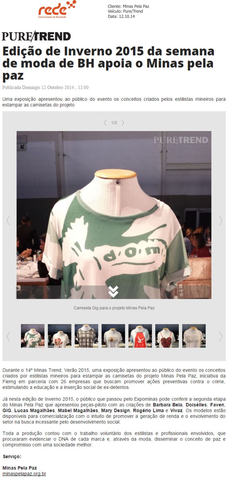 Edição de Inverno 2015 da semana de moda de BH apoia o Minas pela Paz