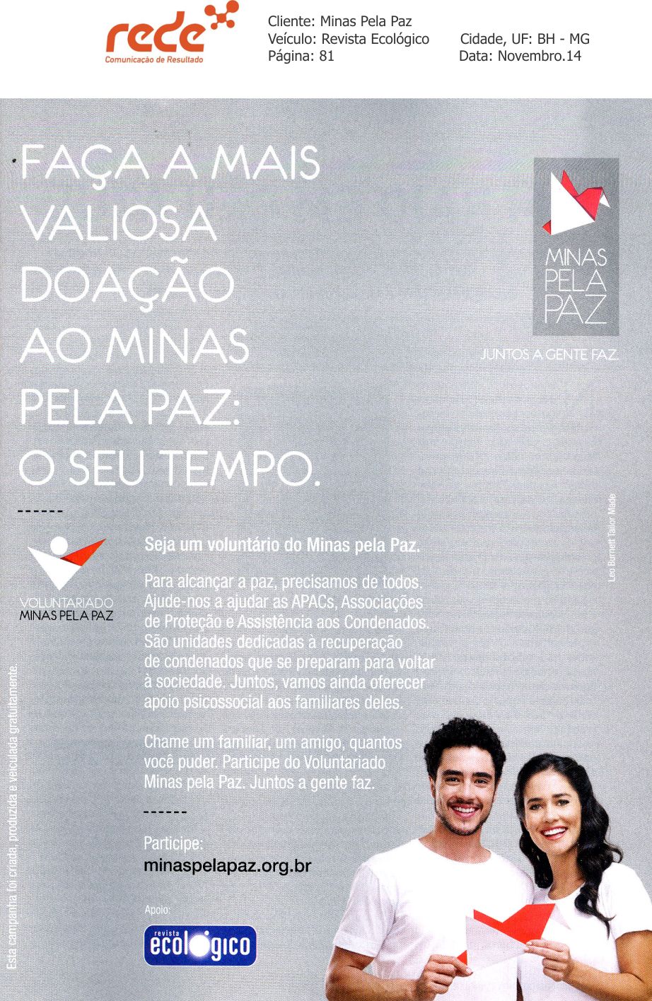 Faça a mais valiosa doação ao Minas Pela Paz: o seu tempo