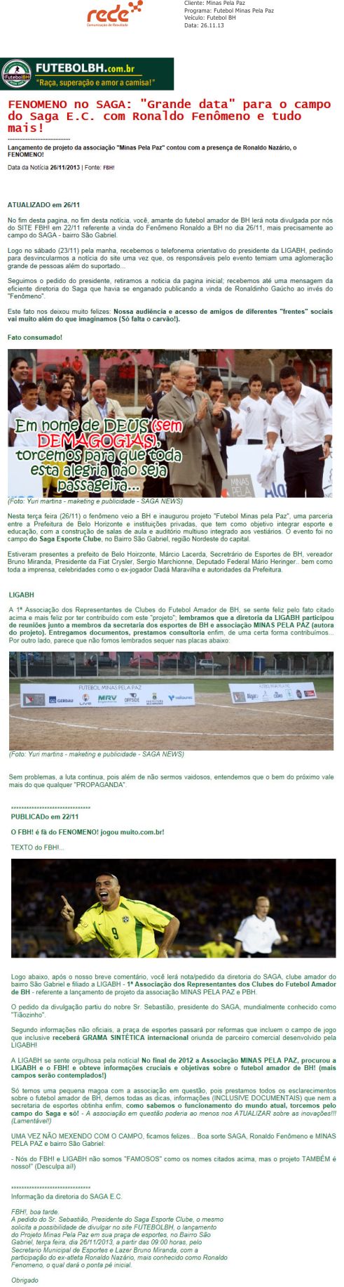 Fenômeno no Saga: “Grande data” para o campo do Saga E. C. com Ronaldo Fenômeno e tudo mais!