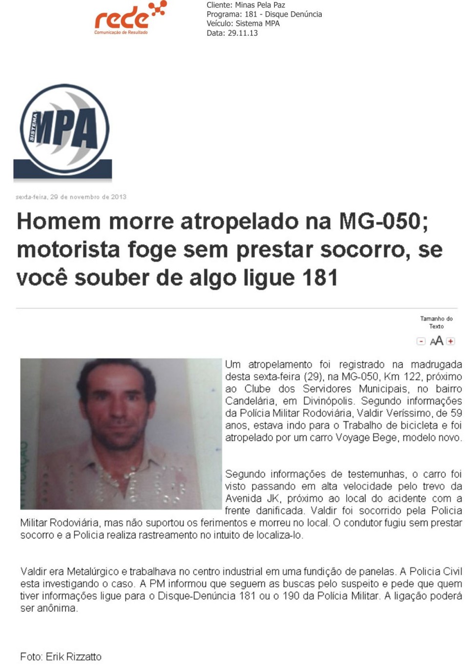 Homem morre atropelado na MG-050; motorista foge sem prestar socorro, se você souber de algo ligue 181