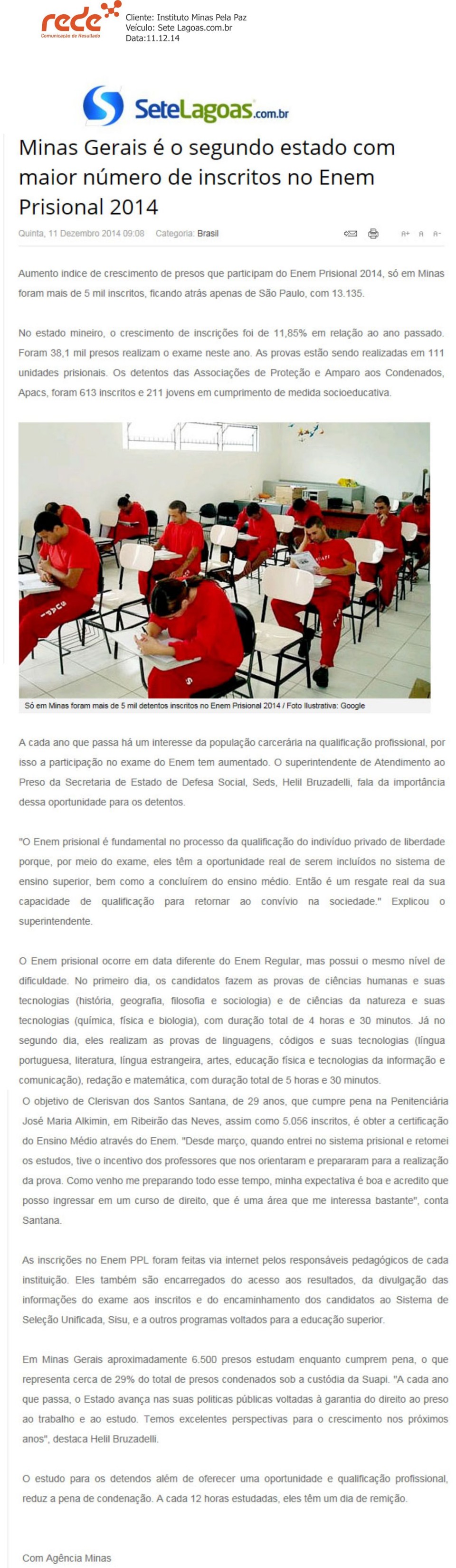 Minas Gerais é o segundo estado com maior número de inscritos no Enem prisional 2014