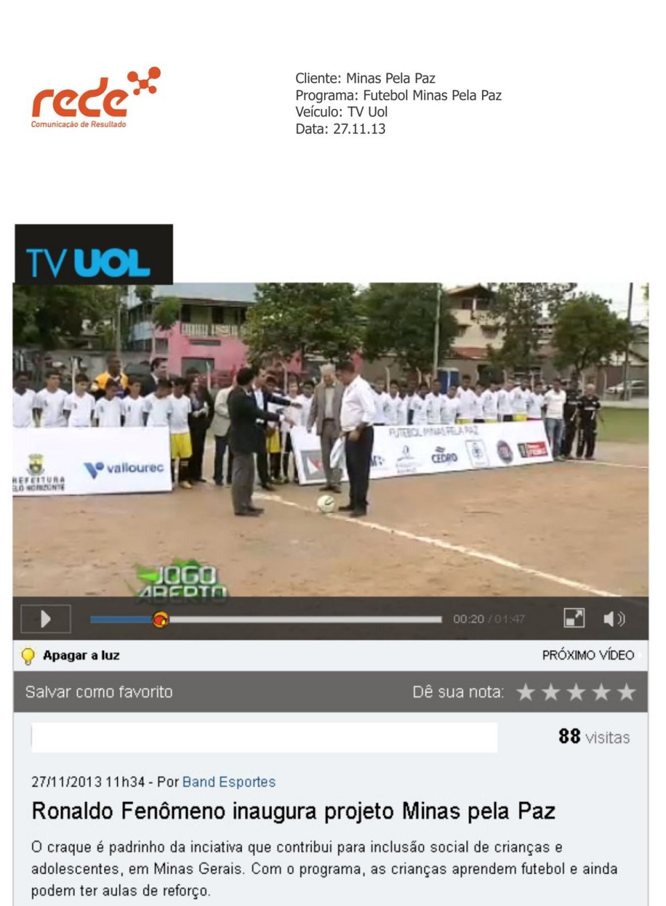 Ronaldo Fenômeno inaugura projeto Minas Pela Paz